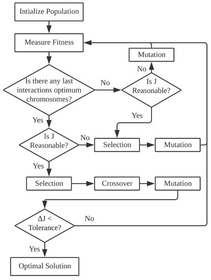 - Step 3: If the difference over the lower values of J achieves value less than the tolerance, the algorithm finds an optimal solution, otherwise it will run itself again until the last generation.