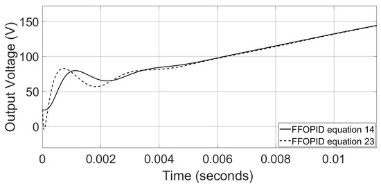 The third case concerns the initial voltage behavior on the startup between the FFOPID controllers in (16) and (25). Figure 11 shows the undesirable undershoot voltage of the controller in (25). From such findings, (16) can remove the initial plant non-minimum phase effect.