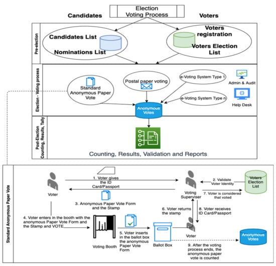 - Langer, L.; Jonker, H.; Pieters, W. Anonymity and Verifiability in Voting: Understanding (Un)Linkability. In Proceedings of the Information and Communications Security. ICICS 2010, Barcelona, Spain, 15−17 December 2010; Lecture Notes in Computer Science. Springer: Berlin/Heidelberg, Germany, 2010; Volume 6476, pp. 296–310. [Google Scholar]