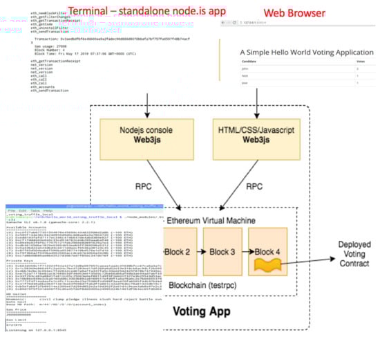 - Ng, J. Voting on a Blockchain: DApp Demonstration, Medium. 11 May 2019. Available online: https://medium.com/coinmonks/voting-on-a-blockchain-dapp-demonstration-dfb5944a0c9e (accessed on 16 December 2021).