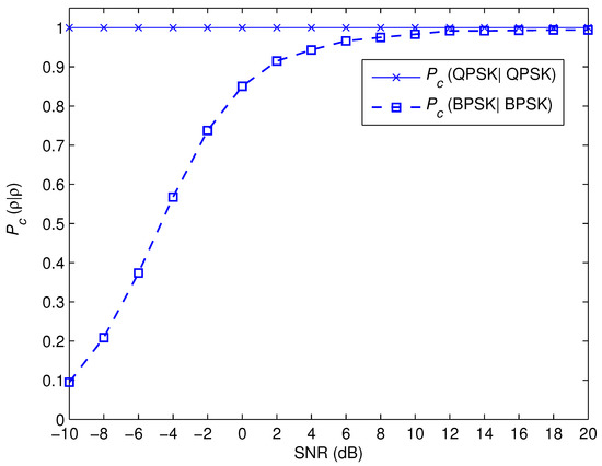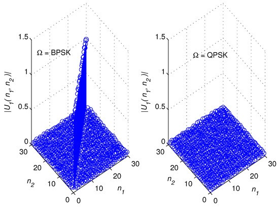 - There is no correlation between and :where is the statistical expectation of a random variable, is the Kronecker delta function, and BPSK denotes to a binary phase shift keying constellation. Furthermore,for all possible values of belong to the constellation options of PSK and QAM. Here ⁎ indicates the complex conjugate operator and M is the modulation order. Here, without loss of generality, we assume that the signal power is one.