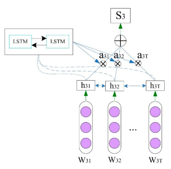 In general, different words have different levels of importance in a sentence. Certain sentiment polarity words are decisive factors in determining the sentiment polarity of a sentence. The structure of the attention mechanism is shown in Figure 3. Words are attributed different weights in a sentence.