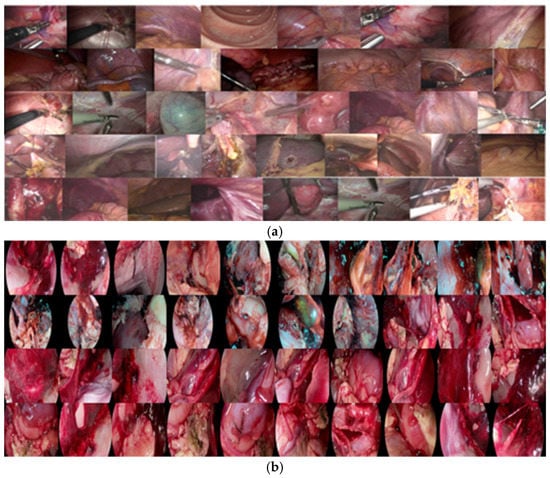 We collected 200 endoscopic images jointly with Hefei Deming Electronics Co., Ltd. (Hefei, China) and the First Affiliated Hospital of Anhui Medical University. Create a dataset named LEI_D, as shown in Figure 1. The LEI_D dataset is used to carry out real minimally invasive surgeries in the relevant departments of the hospital through the CMOS image sensor dedicated to endoscopy and the endoscopy system developed by the company. The video is stored in MP4 format on the endoscopy device side to the mobile hard disk without communication through network encoding to ensure the video’s original quality.