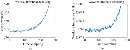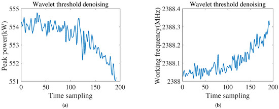 The experimental data is collected by microwave measurement performed on a certain type of marine radar transmitter. There is noise in the measurement data, and, therefore, it is necessary to pre-process the measurement data. The classic wavelet threshold denoising method [25] is selected in the proposed model. The parameter settings include: the threshold function is a soft threshold, the threshold is a heuristic threshold, the wavelet decomposition level is 1, and the wavelet base is Daubechies (db4).
