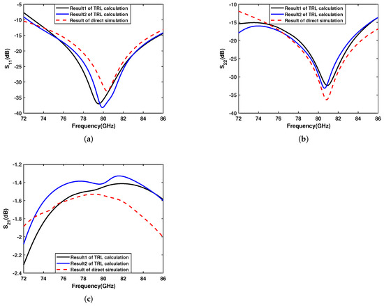 Considering the structure of the package-board transition, which is difficult to measure directly, in this paper, two methods based on the port reduction technique [30,31] and TRL calibration technique [32,33] were used to calculate the S parameter of the transition, respectively.
