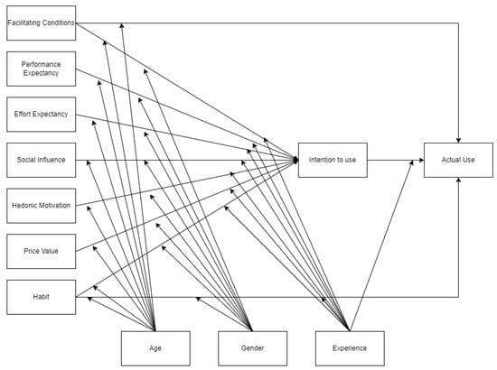 - Venkatesh, V.Y.L.; Thong, J.; Xu, X. Consumer acceptance and use of information Technology: Extending the unified theory of acceptance and use of technology. MIS Q. 2012, 36, 157–178. [Google Scholar] [CrossRef]
