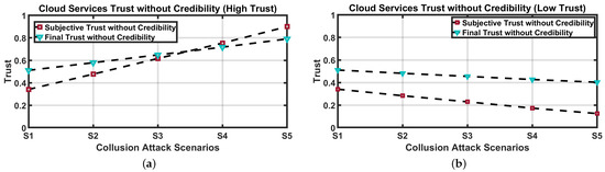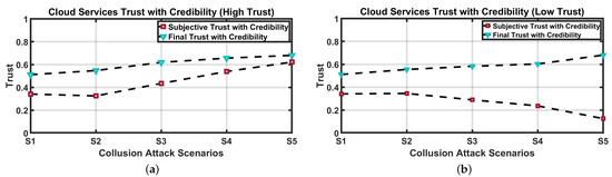 Cloud Services Trust with Credibility: (a) High Trust and (b) Low trust.