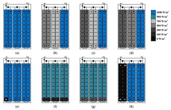 - Silvestre, S.; Boronat, A.; Chouder, A. Study of Bypass Diodes Configuration on PV Modules. Appl. Energy 2009, 86, 1632–1640. [Google Scholar] [CrossRef]