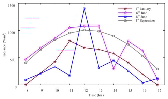 PV system outputs over a day under irradiance data on 1 September shown in Figure 13.