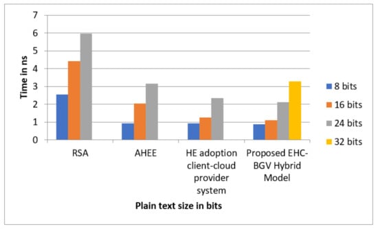 Kanagavalli and Vagdevi [19] compared the BGV homomorphic scheme with the RSA and AHEE homomorphic schemes. They found that the encryption and decryption times required by BGV were comparatively less than those required by RSA and AHEE. Further research could be done to explore ways of storing data in less space, as BGV requires a huge amount of memory and sometimes becomes difficult to manage in real-time applications.