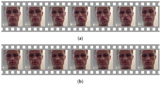 False positive example. (a) is a eyebrow-raising motion. (b) is a wink motion.