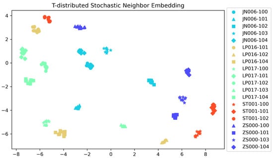 We run the t-SNE algorithm to visualize the face motion embedding vectors generated by the best model we obtained. The results of five subjects making three to five different motions are shown in Figure 9. It shows that our facial motion encoder is capable of extracting efficient embedding to distinguish different facial motions. These results demonstrate that our approach could generate facial motion embedding as the input to the human-computer interaction system and has great potential for more facial motion based applications.