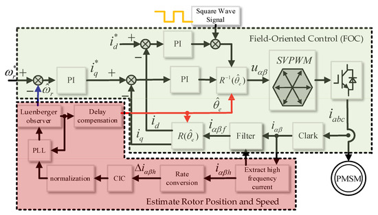 Block diagram of PMSM control principle based on square-wave voltage injection method.