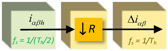 In order to solve the above problems and simplify the process of high-frequency signal extraction, this paper adopts a HF response current extraction strategy based on the delay module. Since the frequency of the injected HF voltage signal is much higher than the operating frequency, the fundamental current if(k) at time k can be approximately equal to the fundamental current if(k + Th/2) at time k. Since the signs of the injected HF voltage signals at time k and (k + Th/2) are opposite, approximately iαβh(k) = −iαβh(k + Th/2). Therefore, the HF response current is obtained by making a difference between the feedback currents at different sampling times. The equation is as follows: