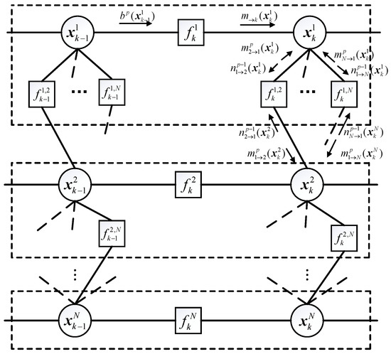 where and denotes the minimum mean-squared error (MMSE) estimator. Note that the stacking way of the measurements in Equation (4) is for the convenience of developing of filtering algorithm. The linear Gaussian assumptions made through Equations (1)–(3) do not reduce the significance of our study, since our proposed algorithm can be directly combined with NBP to deal with nonlinear or non-Gaussian cases.