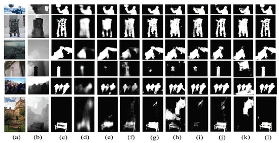 - Zhao, J.X.; Cao, Y.; Fan, D.P.; Cheng, M.M.; Li, X.Y.; Zhang, L. Contrast prior and fluid pyramid integration for RGBD salient object detection. In Proceedings of the IEEE Conference on Computer Vision and Pattern Recognition, Long Beach, CA, USA, 16–20 June 2019; pp. 3927–3936. [Google Scholar]