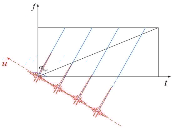 It can be seen from (5) that the instantaneous frequency of the SMSP jamming is composed of k lines with the same slope, and the slope of each line is , the intercept distance is , and the sub-pulse width is .