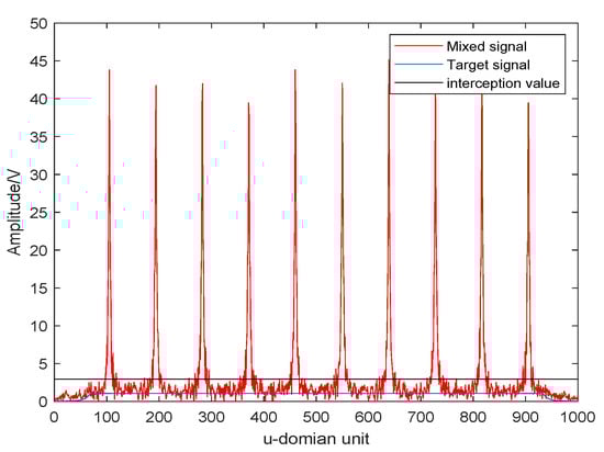 Step 3: In the u-domain, the intercept amplitude is set as , where a is the normalized threshold factor of the adaptive intercept, and it can be adaptively chosen by constant false alarm rate (CFAR). Find the position of the u-domain units corresponding to the SMSP jamming, and then set the amplitude of the units to zero, which is corresponding to (12).