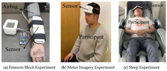 In order to verify the performance and reliability of the system, a forearm arterial occlusion experiment, motor imagery experiment, and sleep experiment were performed. Participants aged from 20 to 25 years old were recruited for the experiments. The participants had no major diseases, and the blood pressure of each participant was normal and stable.