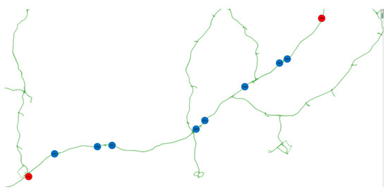 In Figure 2, the red stations indicate the toll stations from beginning to end in an OD path, and the green stations indicate the passing entrance stations. At the same time, we call all the OD paths on the expressway OD path sets.