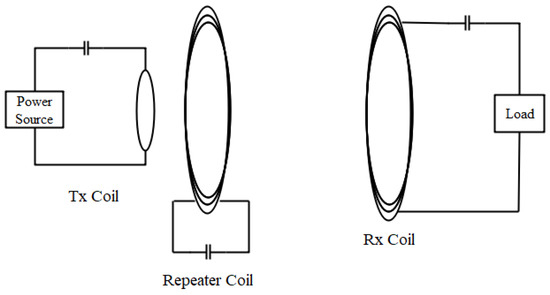 Wireless power transfer technology based on magnetic resonance has gained great interest in recent years. It has found applications in the charging of consumer electronic devices, medical implants, electric vehicles and drones [1,2,3,4]. Conventionally, a two-coil system is used, which includes a transmitter coil (Tx) and a receiver coil (Rx). It has been noted that the power transfer capability is highly dependent on the transmission distance and coil alignment [5,6,7,8,9,10,11,12]. The two-coil system is suitable for short-range power transmission with high alignment of the coils in order to maximize the power transfer efficiency [13]. When the transmission distance becomes larger or coil misalignments occur, the coupling coefficient between the coils becomes relatively small. The power transfer efficiency rapidly decreases in this case. Thus, a four-coil IPT system has been proposed and investigated in [14].