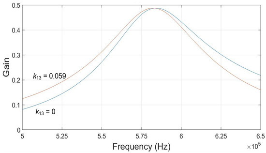 Frequency response of the system with k13 = 0 and k13 = 0.059.