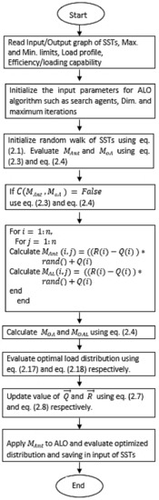 Various metaheuristic approaches play a paramount role in economic scheduling and dispatch. The present body of knowledge contains various approaches for improving the performance of power systems by economic load management. The trend is, however, shifting from conventional techniques to metaheuristic approaches. The ALO method is proposed to solve the optimal load distribution of modular SSTs. In this research, 16 SSTs of five different types are used in the DC distribution network. An objective function is formulated which considers the input/output behaviors of the SSTs and their minimum and maximum power handling capability. Three test cases are employed: S-I—all SSTs ON; S-II—only scheduled SSTs ON; and S-III—comparison with other metaheuristic methods. ALO provides better results for SST scheduling based on efficiency as compared to the other two methods (whale and grey wolf optimizer).