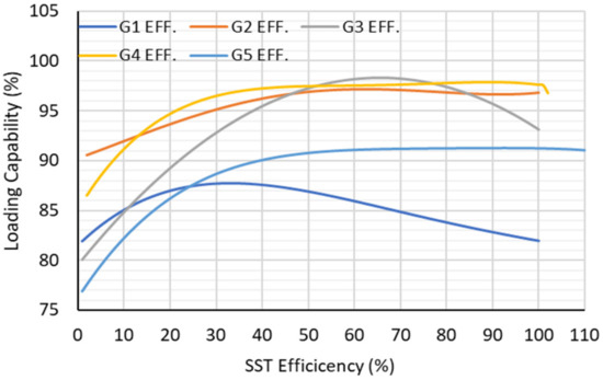 Efficiency vs. loading capability characteristics of SSTs.
