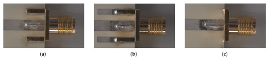 - Liang, H.; Laskar, J.; Barnes, H.; Estreich, D. Design and optimization for coaxial-to-microstrip transition on multilayer substrates. In Proceedings of the 2001 IEEE MTT-S International Microwave Sympsoium Digest (Cat. No.01CH37157), Phoenix, AZ, USA, 20–24 May 2001. [Google Scholar]