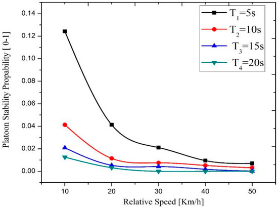 Platoon stability probability with different relative speed.
