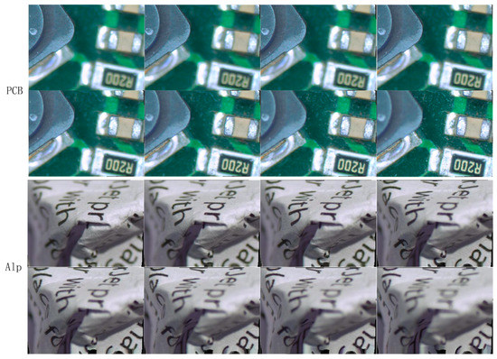 We first use a microscope and a Basler industrial camera acA640 to take two sets of defocused images, PCB and Alp, as shown in Figure 3.
