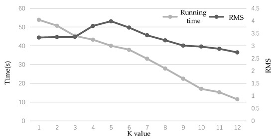 For the selection of the K value, according to the experimental results, the larger the K value, the smaller the experimental group and the shorter the running time. This is a simple linear relationship. For example, when the K value is 3, there are only nine sets of depth information, and when the K value is 12, there is only one set.