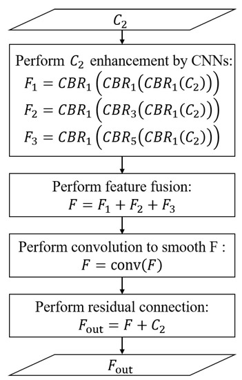 Small object features are extracted from in FPN, which is obtained by adding and . has accurate localization and simple semantic information, but the lack of deep convolution would bring noise to . Therefore, it is necessary to design a deep convolution block for to improve its abstract semantic information and reduce detailed information.