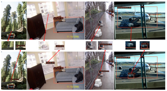 In real-world scenarios, there is usually a relationship between “object to scene” and “object to object”, and using this relationship will help improve the detection performance of small objects. Treating context utilization as an optimization problem, Barnea et al. discussed how much context or other types of additional information could improve detection scores and showed that simple co-occurrence relationships are the most effective context information [18]. Chen et al. proposed a hierarchical context embedding framework to enhance the feature representation of candidate regions by mining contextual cues [19]. Fu et al. modeled and inferred the inherent semantics and spatial layout relationship between objects and retained the spatial information as much as possible when extracting the semantic features of small objects [20]. Pato et al. proposed a rescoring algorithm based on contextual rescoring, which used RNNs (Recurrent Neural Networks) and self-attention mechanisms to transfer information between candidate regions and generate contextual representation, and used the obtained context information to perform a secondary evaluation of the detection results [21].