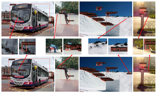 The visualization results of the three datasets are shown in Figure 9, Figure 10 and Figure 11. The first row is the visual results of the baseline, and the last row is the visual results of Faster R-CNN + SV-FPN. In addition, there is a comparison of the results between the first row and the last row.