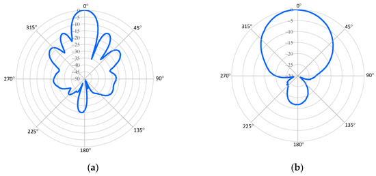 The radiation patterns: (a) 17.5 dBi gain antenna; (b) 9.5 dBi gain antenna.
