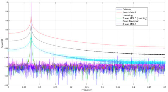 - Albrecht, H. Tailoring of Minimum Sidelobe Cosine-Sum Windows for High-Resolution Measurements. Signal Process. J. 2010, 3, 20–29. [Google Scholar]