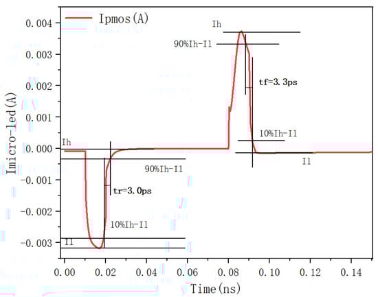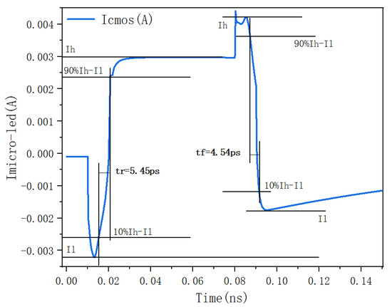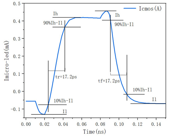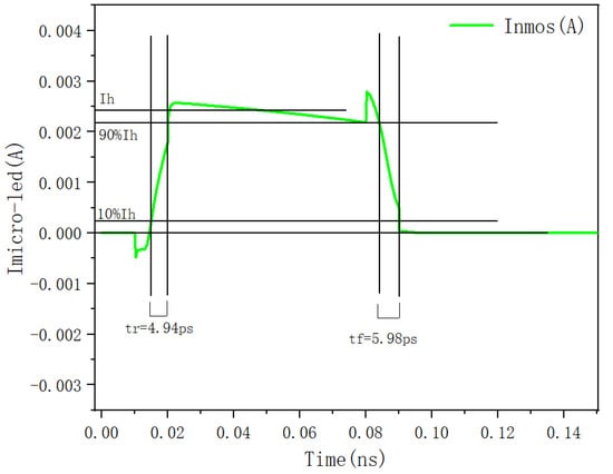 Analysis of the rising time and falling time of the output current curve of the NMOS directly driving the micro-LED with time.