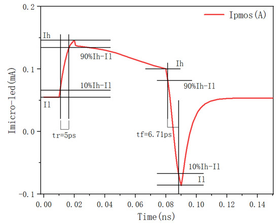Analysis of rising time and falling time of the output current curve of the PMOS directly driving the micro-LED with time.