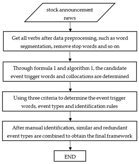 Much empirical research has shown that news events have important impacts on the stock market. According to Yin’s classification standard [1], news can be divided into specific news and general news. Specific news refers to news stories where the affected stock entities are clearly specified in the news text, while general news refers to stories where they are not. Specific news usually involves announcements about stocks. General news includes industry news, policy news, microeconomic news and so on. When analyzing the impact of general news on the stock market, we first need to determine the stock entities that may be affected by such news. Due to the different processing methods for the two kinds of news, this paper only focuses on stock announcement news, which can reflect the recent development of a listed company. It can assist investors in making decisions and can be used in stock return predictions. Determining the event type is one of the main tasks of event extraction. The announcement news covers all aspects of information about listed companies, so it is a challenge to build a maturity event type framework from stock announcement news.