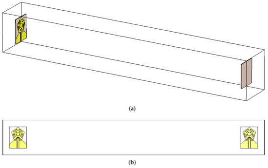 For near-field microwave imaging applications, it is necessary to assess the performance of the antenna in the time domain [23]. For this purpose, two identical antennas are placed 30 cm apart from each other in two different configurations, i.e., face to face and side by side, respectively, as shown in Figure 10a,b, in which both the antennas work in the transceiver mode.