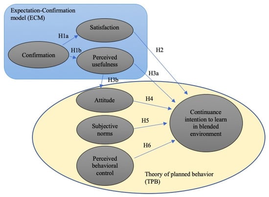 For our study, we used the Expectation–Confirmation Model [12] and Theory of Planned Behavior [13] as a framework for studying the factors influencing university students’ acceptance of blended learning and the relationships between these factors.