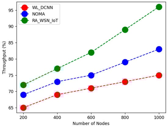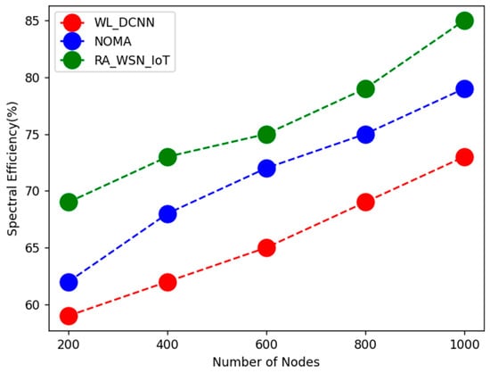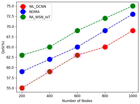 The above Table 2, Table 3, Table 4, Table 5 and Table 6 shows comparative analysis of WSN based resource allocation using deep learning in energy efficiency with data optimization. Here, parametric analysis is carried out in terms of throughput, energy efficiency, QoS, throughput, and spectral efficiency. The proposed technique obtained optimal results as throughput of 96%, energy efficiency of 95%, QoS of 75%, spectral efficiency of 85%, and network lifetime of 91%, as shown in Figure 1, Figure 2, Figure 3, Figure 4 and Figure 5. From the above analysis, the energy efficiency and data optimization have been optimized by the proposed technique.