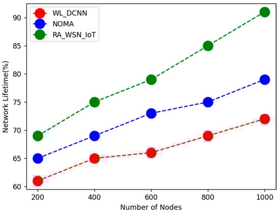 The performance of proposed DL routing protocol is calculated, utilizing the MATLAB platform to simulate the suggested architecture. The number of nodes used in this experiment might range from 200 to 1000. These nodes are spread out over a 1000 × 1000 m2 region. The proposed WODNN HMOFA is compared against five current algorithms, including the GEEC protocol, TTDFP, and EADCR. Table 1 lists the simulated parameters used in this study.