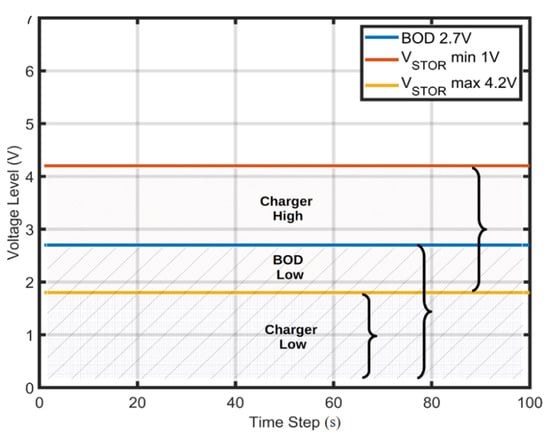 The BOD voltage level versus the charger voltage levels.