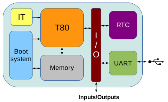 Figure 1 presents a summarized diagram of the Dracon platform, including the T80 CPU, internal memory, boot system, Interrupt Timer (IT), Real Time Clock (RTC) and a UART to communicate with the outside. The next subsections will describe each of the internal subsystems in more detail.