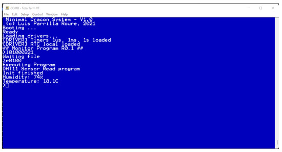 - Parrilla, L. Hello World for Dracon. Available online: https://ditec.ugr.es/sites/default/files/descargas/mDracon/hello2.bin (accessed on 18 April 2022).