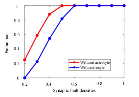 Failure rates at different synaptic fault densities.