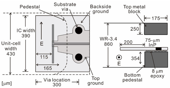 E- and H-plane views of the IC chip mounted in the unit cell.