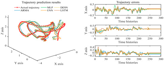 The trajectories utilized in this study are shown in Figure 3. Each of the trajectories has 1000 data points. The first 700 data points are utilized as the training set and the remaining 300 data points are utilized as the testing set. It can be observed that trajectory datasets #1 and #2 are two-dimensional, while datasets #3 and #4 are three-dimensional, with which we can verify the performance of the model comprehensively. It is worth mentioning that the number of advance prediction steps for each constructed model is five steps, and the prediction timestep windows are the same as the prediction horizons.